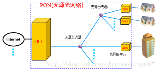 那么,F(xiàn)TTx是如何實(shí)現(xiàn)的呢?在多種方案中,PON(PassiveOptical Network,無(wú)源光纖網(wǎng)絡(luò))是最佳選擇。PON是一種應(yīng)用于接入網(wǎng),其主要結(jié)構(gòu)如圖1所示。