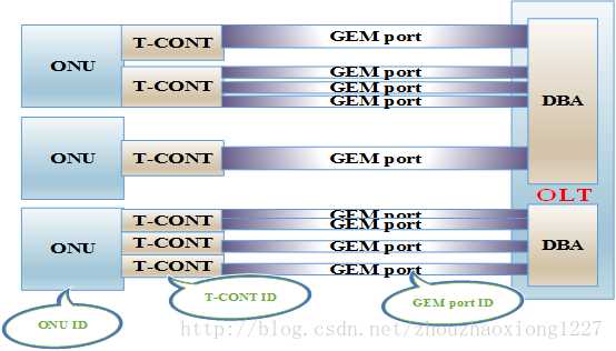 (1) ONU由ONU ID來(lái)唯一標(biāo)識(shí),T-CONT由T-CONTID來(lái)標(biāo)識(shí),GEM port由GEM portID來(lái)標(biāo)識(shí);